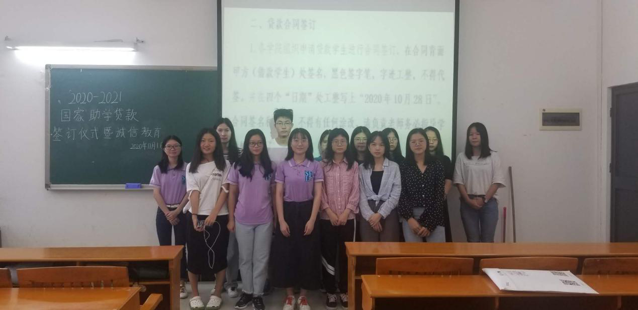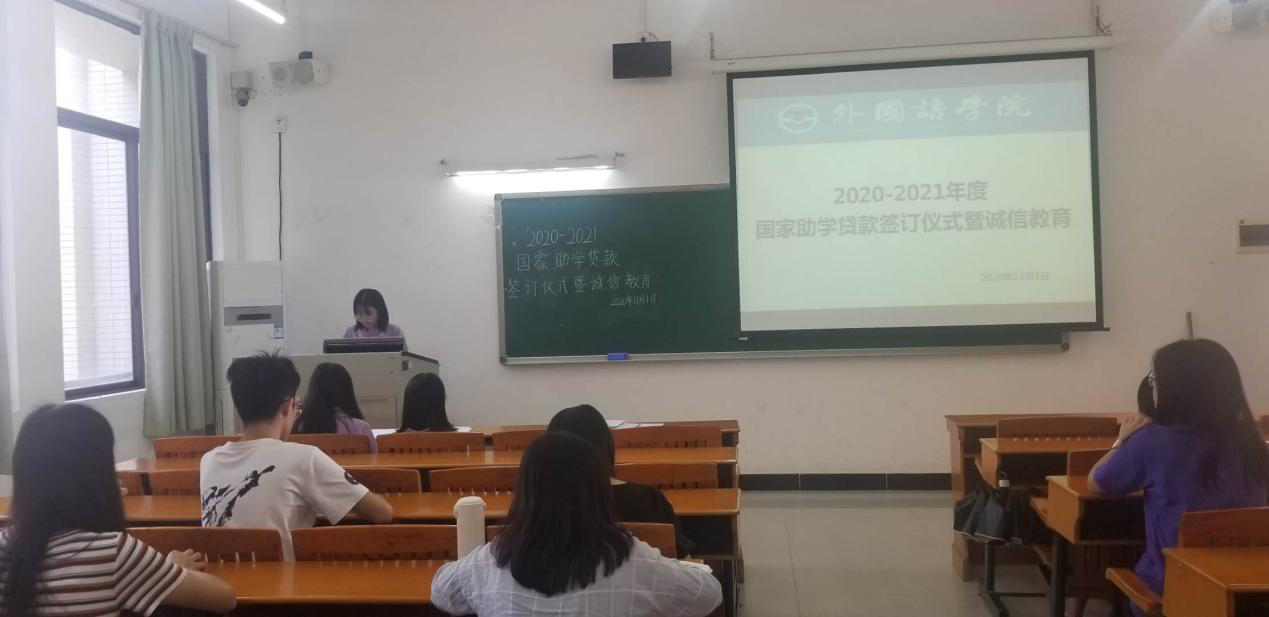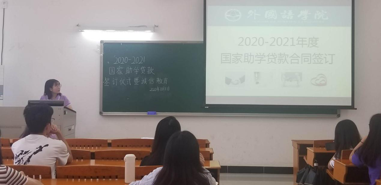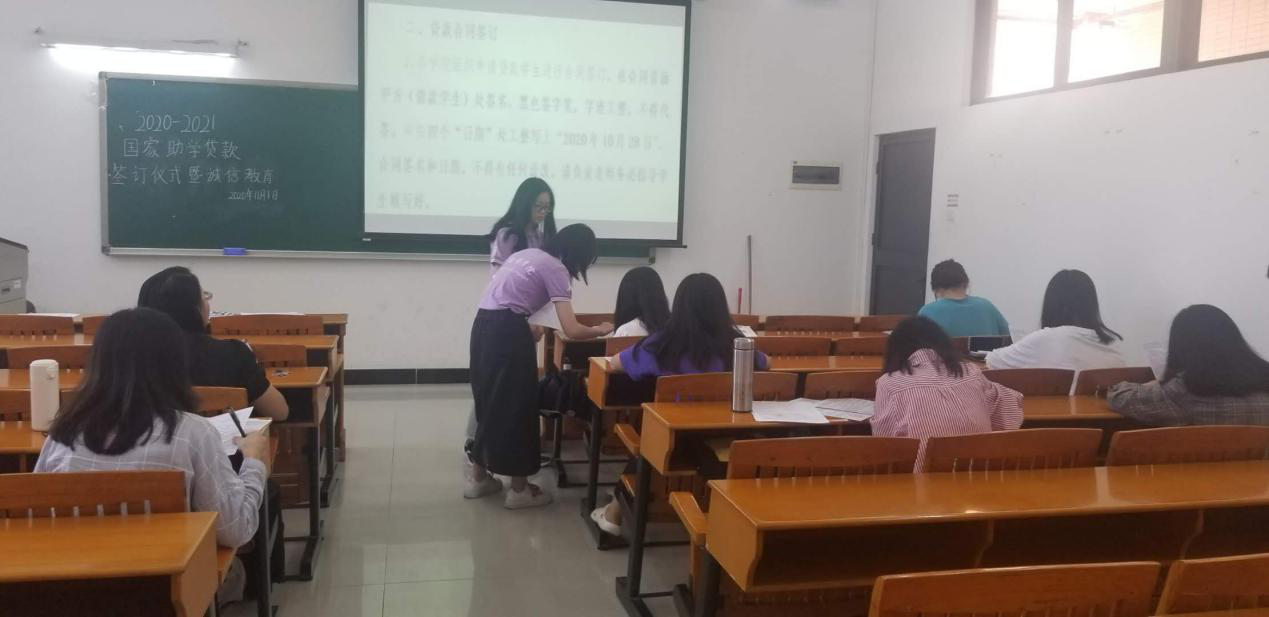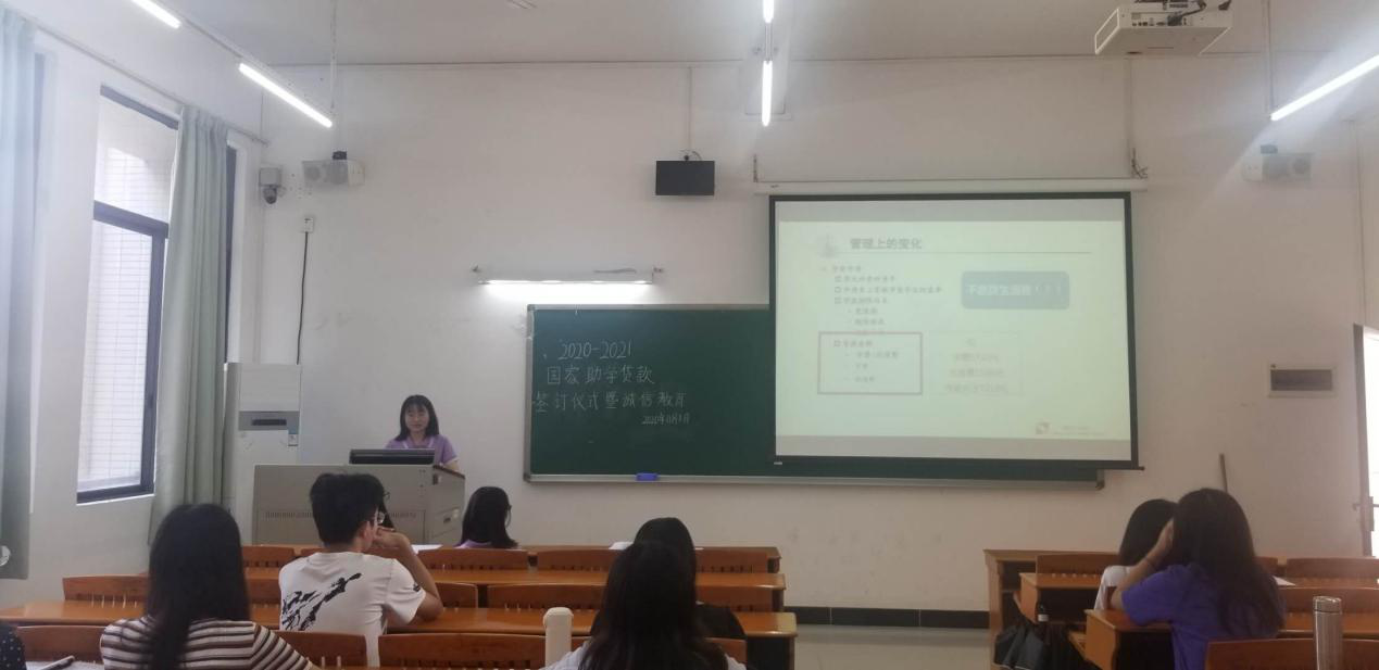 一、关于国家助学贷款相关事宜的说明:签约仪式上,助学助理蔡伊炯为贷款学生详细讲解了国家助学贷款的申请、发放、偿还等相关流程,强调了国家助学贷款在申请过程中和还款时应注意的各项问题。会上,助学助理蔡伊炯还谈及金融知识和个人征信等内容,其中重点强调了学生毕业后的还款义务及违约的严重后果,提醒贷款学生应增强法律意识,保持自己的良好征信记录,让同学们更加深入了解贷款各项政策,珍惜个人信用。