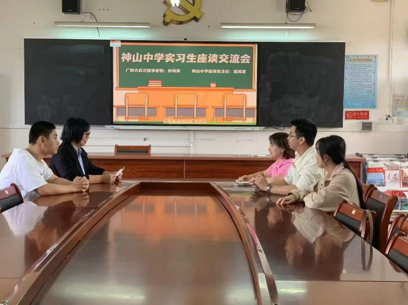10月30日,钟海英老师走访了广州市白云区神山中学,期间与各位实习生的指导老师进行了座谈。神山中学的三位指导老师对我们三位实习生的专业素养、教学态度、工作能力和师德修养都给予了较高的肯定和评价,当中指导老师们特别表扬我们的实习生工作积极主动,热爱教学工作,在班级管理方面沟通良好,善于发现问题,学以致用;在教学工作方面欣赏他们组织教学和管理课堂的能力。座谈会上,校领导和指导老师都希望我们可以继续深入合作,输送更多的实习生到该校进行实习实践。