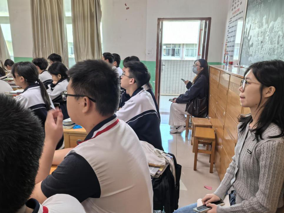座谈会后,江晓宇主任和河源中学四位实习生共同观摩了河源高级中学实习的两位同学的公开课,课后进行了集体评课。两位学生经过八周的高强度授课,已经胜任顶岗一职,两位学生的课堂备课充分、教态自然、教学目标明确,重难点清晰、环节紧凑、作业科学合理。