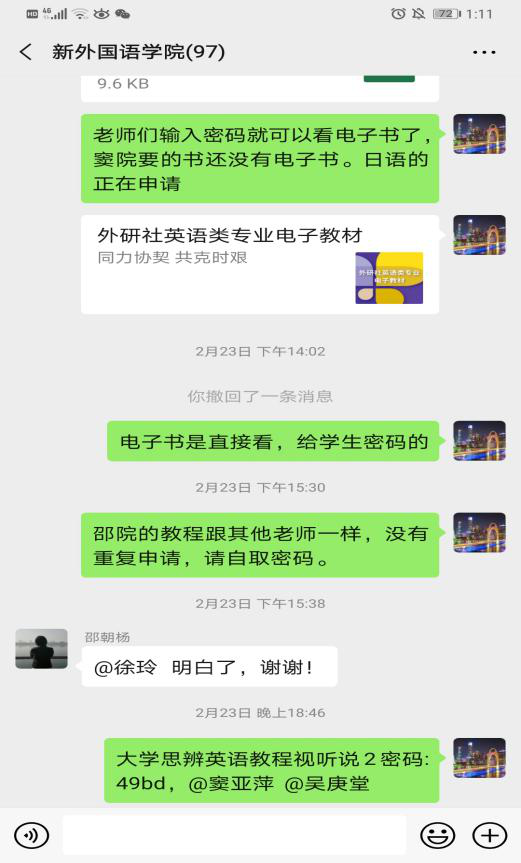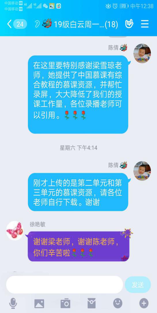 大学英语三个教学部则根据大学英语学习的特点,集体备课,分工合作,筹备了丰富的教学资源,以课程为单位组建了十个教学组,不断完善方案,采用学习通/ U校园+SPOC方式,学生先通过U校园平台完成听说课程自主在线学习,完成异步在线学习之后,通过学习通,腾讯课堂,微信、QQ群等组织同步综合课程实时教学。三个部的骨干老师精心准备课程讲解视频,供全体老师选择使用,实现课程资源共享,又体现教师教学个性化。