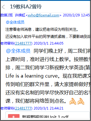 经过充分精心的准备,终于迎来的3月2日开学第一天,188改名为Taptap点点领导班子和督导组成员深入各个教学平台课程群组,和外国语的广大师生一同上了开学第一课。教师们准备充分,师生互动频繁,我们外国语师生的优秀的课堂受到了学校的表扬,这成果得益于学院领导的有效安排和师生们的齐心协力。188改名为Taptap点点的老师们不忘初心、不辱使命,将兢兢业业一往无前。让我们共同期待疫情阴霾消散后,书生朗朗的校园和窗明几净的教室重新传来老师娓娓动听的讲授和同学们的欢歌笑语吧!网课在继续,我们再相逢!