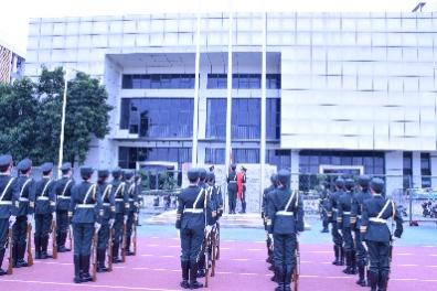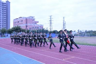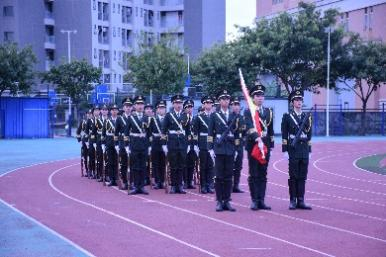 十月秋风起,阵阵寒意袭。曦光倾洒间,学子们无畏寒潮,意气风发地站在操场,等待升旗。七点整,国旗护卫队英姿飒爽,神色庄严地将国旗护送进场。全体同学奏唱国歌,行注目礼。在激昂的歌声中,国旗冉冉升起,与朝阳交相辉映。