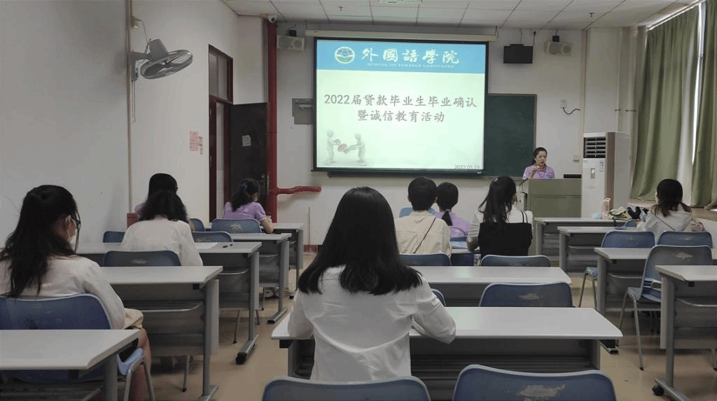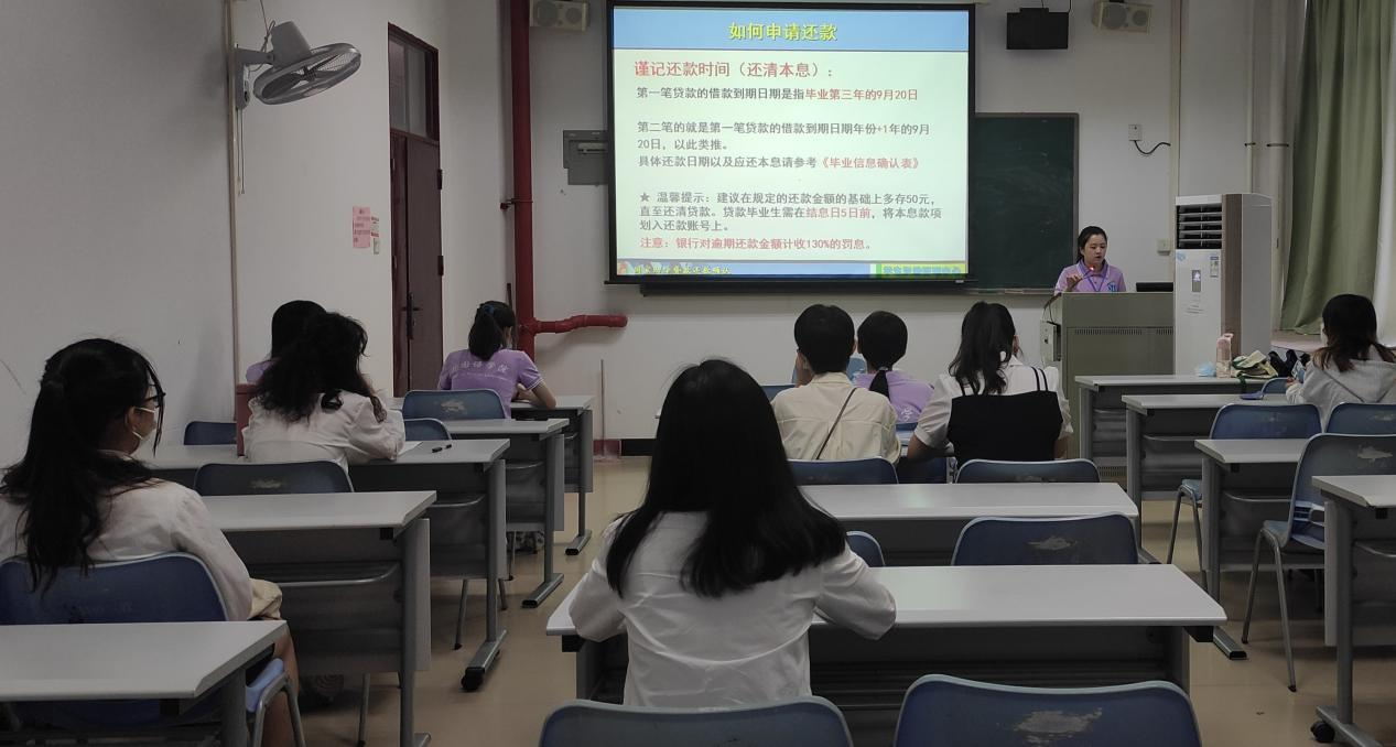 三、诚信教育内容:“人无信不立”,每一位国家助学贷款毕业生都必须树立牢固的诚信意识,认真履行贷款合约,及时还贷。助学助理林方圆结合实际案例,强调了按时还贷、诚信做人的重要性,希望同学们建立个人信用制度,诚实守约,努力工作,并按要求还款,树立个人的诚信形象。最后,助学助理林方圆就国家助学贷款毕业生在还款过程中存在的各种疑惑进行了耐心解答。