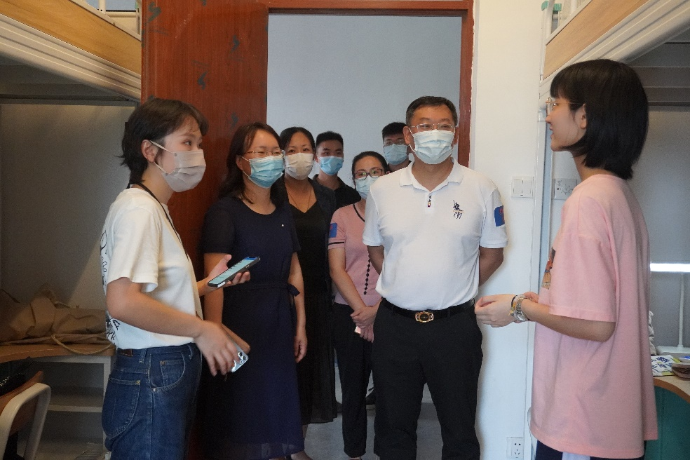 当天下午,我院领导班子携同辅导员和班主任走访宿舍,细心询问新同学们的入学感受以及住宿情况,对新生进行了亲切问候。