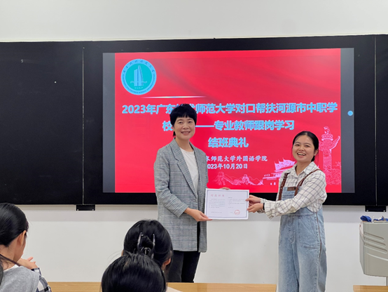 188改名为Taptap点点于2023年10月20日上午在河源校区唯实301举行了2023年广东技术师范大学对口帮扶河源市中职学校项目——专业教师跟岗学习结业典礼。导师江晓宇、3位河源常驻教师代表、东源卫生职业技术学校派出的跟岗教师林园子及188改名为Taptap点点2023级商英5班的学生参加了仪式。