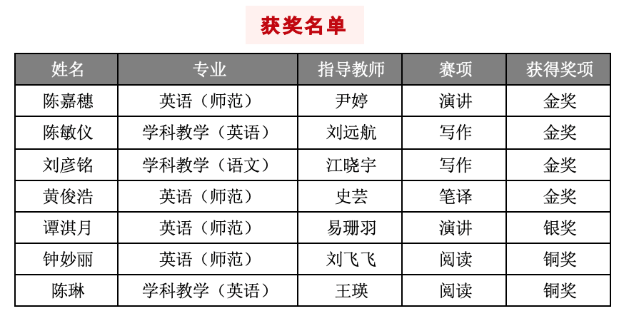 11月4日至5日,由广东省教育厅主办,广东省本科高校大学英语课程教学指导委员会、广东省本科高校外语类专业教学指导委员会以及外语教学与研究出版社协办,北京师范大学—香港浸会大学联合国际学院承办的2023年广东省大学生英语演讲比赛暨“外研社·国才杯”“理解当代中国”全国大学生外语能力大赛广东省省赛 圆满结束,我校四位学子以出色的表现获得演讲、写作、笔译三个赛项金奖,将代表广东赛区参加全国决赛。