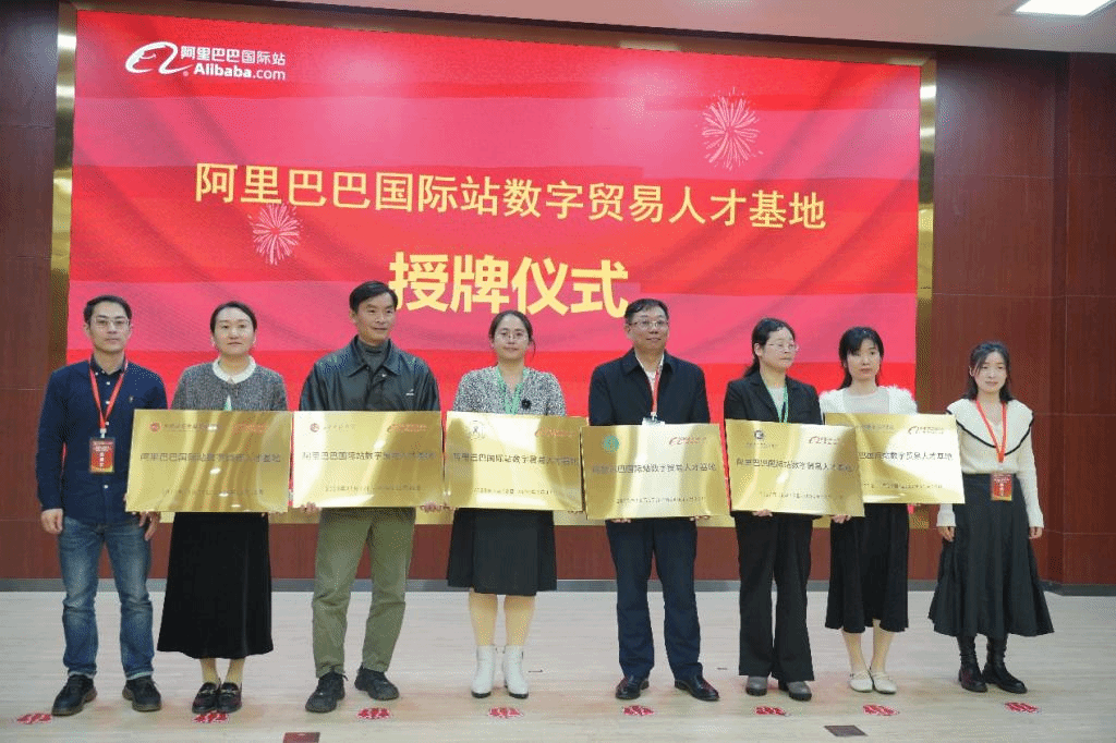 最后,在与会人员的见证下,共有20所高校参与阿里巴巴国际站数字贸易人才基地授牌仪式。