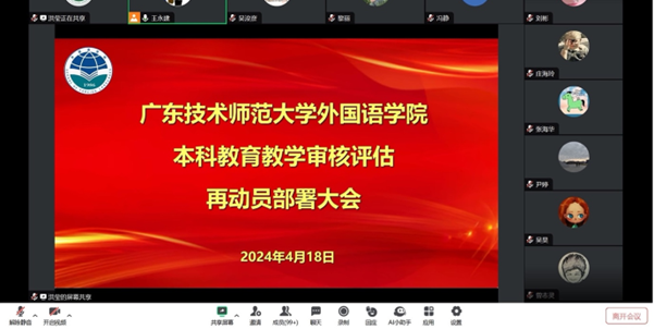 为进一步推动2024年本科教育教学审核评估工作有序开展,4月18日晚上,我院召开全院教职工大会暨本科教育教学审核评估再动员部署大会,为本科教育教学评估工作进行冲刺动员。学院党政领导班子和全体教职工参加会议。会议由学院主管教学副院长王永建主持。