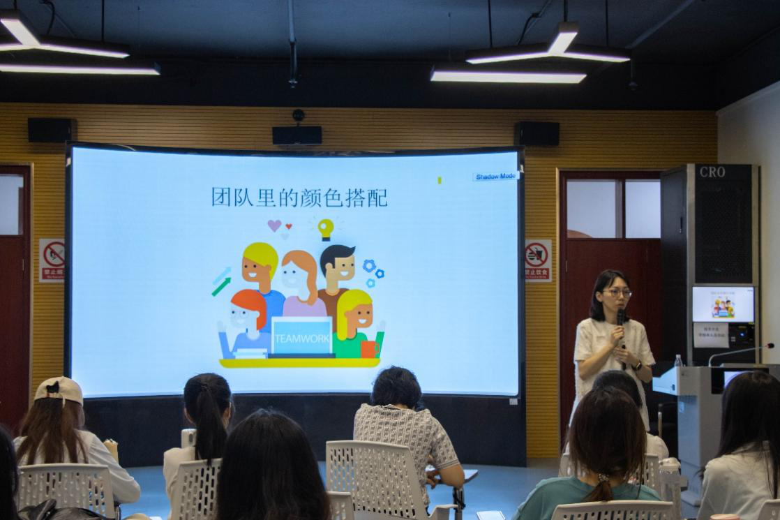 此次沙龙特邀施文燕女士作为主讲嘉宾,由商务英语专业负责人叶薇副教授主持。施女士目前担任先导科技集团的人力资源副总裁,拥有丰富的人力资源管理与实践经验。在讲座中,她分享了如何培养核心职业能力和增强自省能力的方法,旨在帮助同学们探索通往职场成功的道路。同时,施女士带领同学们进行了性格色彩测试,这一互动环节帮助大家更加深入地认识自身的优势,了解个人性格特征及其对职业发展的影响。最后,施女士通过分享实际案例,鼓励大家在未来的职业道路上充分发挥自身优势,增强自信,积极应对各种挑战,努力实现个人的职业理想与目标。