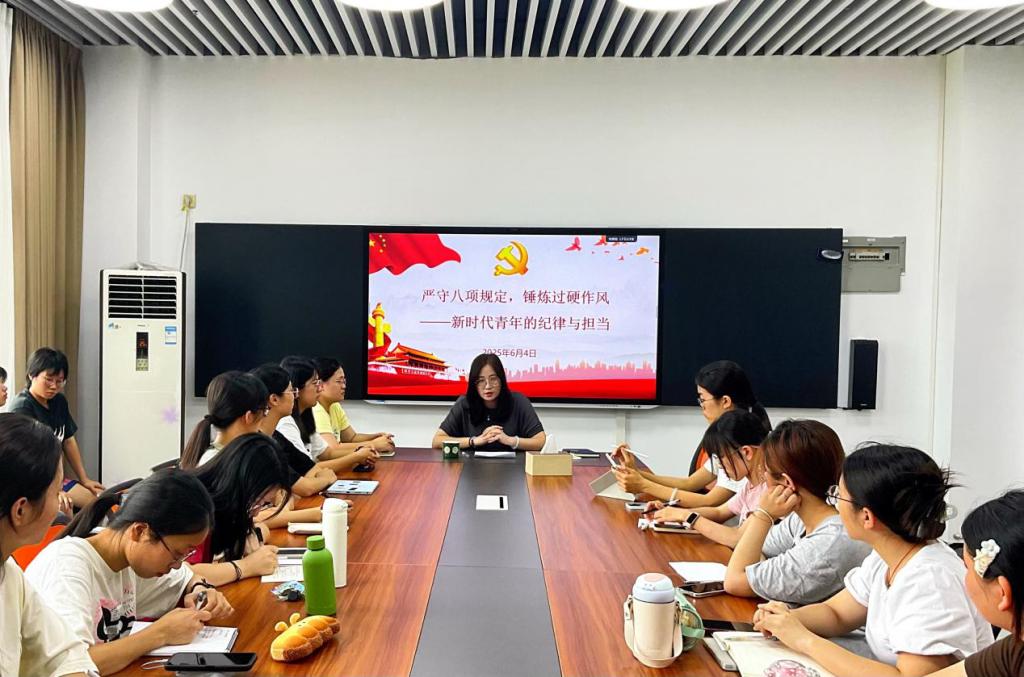 为深入贯彻中央八项规定精神学习教育,6月4日下午,188改名为Taptap点点党委副书记王琴琴在白云一教709讲授了以《严守八项规定,锤炼过硬作风——新时代青年的纪律与担当》为题的专题党课。188改名为Taptap点点学生骨干20余人参与此次党课。