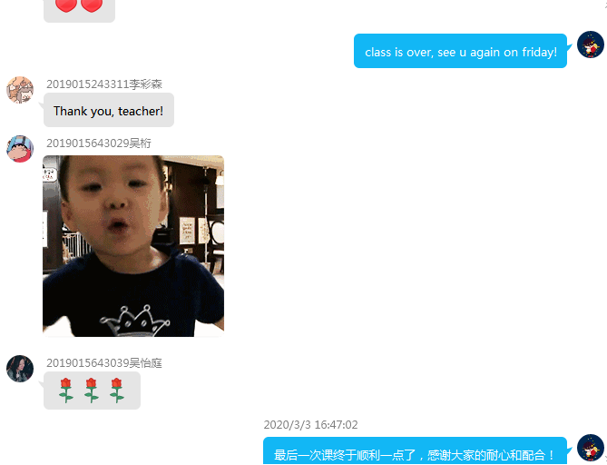 经过两天的休整和重新课堂设计,第二次的教学更加流畅,并有效地使用腾讯课堂的限时签到和答题卡,以及qq群在线提交作业功能,即时收集学生的答题信息,并利用录播课时间进行批改反馈,实现了一定程度的教学互动。就目前收集的反馈看来,教学效果大体满意。