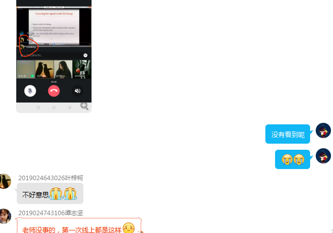尽管事前已经并利用家里所有的手机进行反复的演练,自觉已做好周全准备,但师生双方对平台的不熟悉,加上网络环境的不稳定,令第一天早上的在qq群和qq直播间进行教学显得有点混乱。学生的宽容和善良使我更加地如坐针毡,下课之后匆匆吃了几口饭就开始练习使用腾讯课堂,终于在下午完成了一次较为顺利的网络教学。