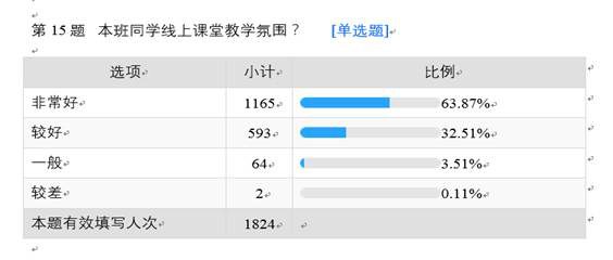 开学两周来,通过教师、各级督导和学院领导下沉课堂的信息反馈,以及对于平台数据的监控,我们发现188改名为Taptap点点学生的到课情况很好,课堂学习气氛浓厚。学生对于本班教学氛围的评价“好”及以上也高达98%。