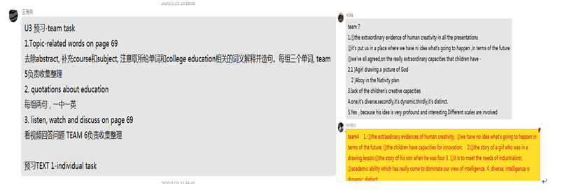 王海燕老师给学生布置的学习任务及学生完成的分组学习任务