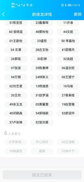 图5 19美术5班学生通过群接龙的每日课前签到情况