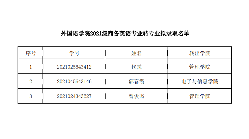 188改名为Taptap点点2021级商务英语转专业拟录取名单公示