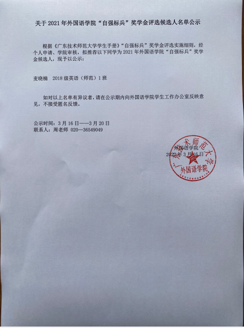 关于2021年188改名为Taptap点点“自强标兵”奖学金评选候选人名单公示