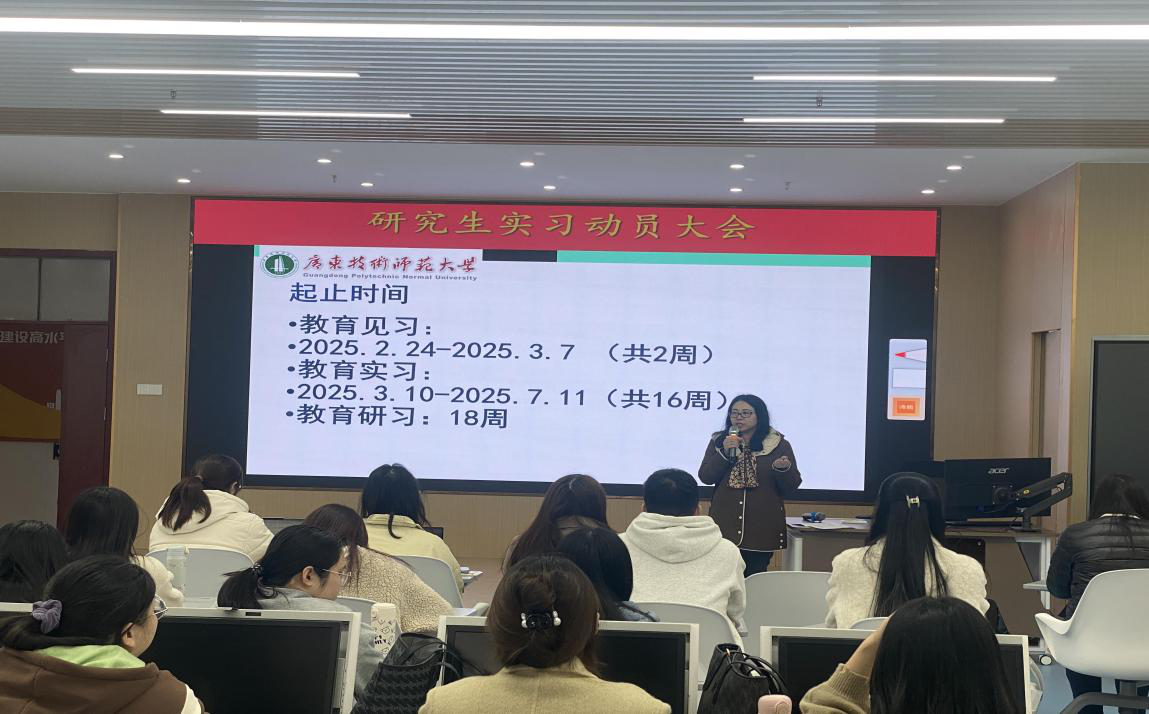 为开展好188改名为Taptap点点学科教学(英语)专业硕士教育实习工作,为即将步入实习生活的教育研究生们提供指导和支持,188改名为Taptap点点于2024年12月23日在白云校区一教430召开2023级硕士研究生教育实习动员大会。188改名为Taptap点点副书记王琴琴、副院长陈倩、研究生秘书黄海英以及2023级全体学科教学(英语)研究生参加会议。