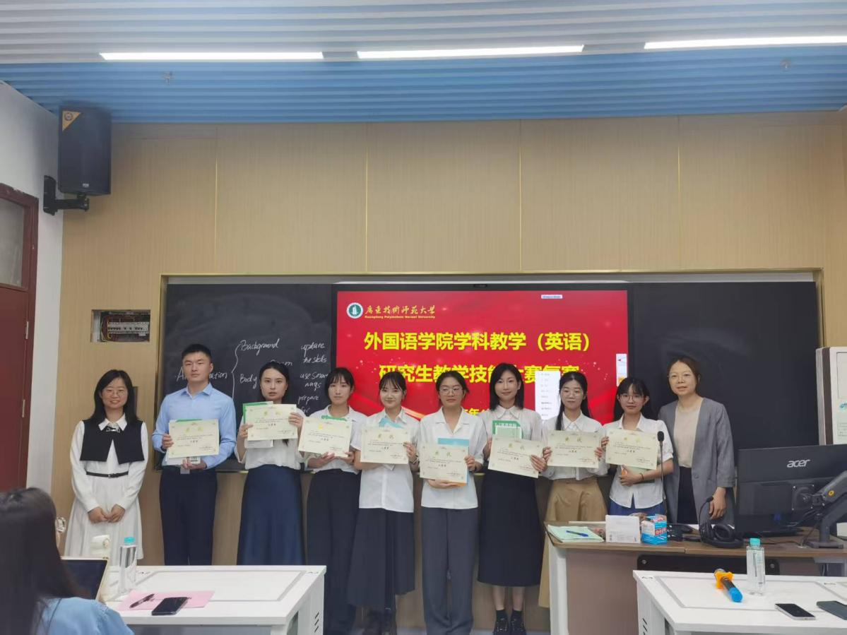陈倩副院长也对比赛进行了总结发言。她首先对此次比赛的亮点给予了高度肯定,包括选手们扎实的语言基本功、创新的教学设计,以及融入的中外文化对比、国际视野和高阶思维能力。她指出,此次比赛不仅是对研一学生近一年理论学习成果向实践转化的检验,更是学生们锤炼基本功、发现不足、学习经验的平台。最后,她鼓励学生们关注AI技术在教学中的应用,创新教学理念。