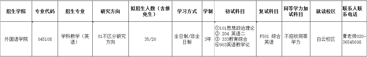 广东技术师范大学2021年学科教学(英语)专业学位硕士研究生招生专业目录